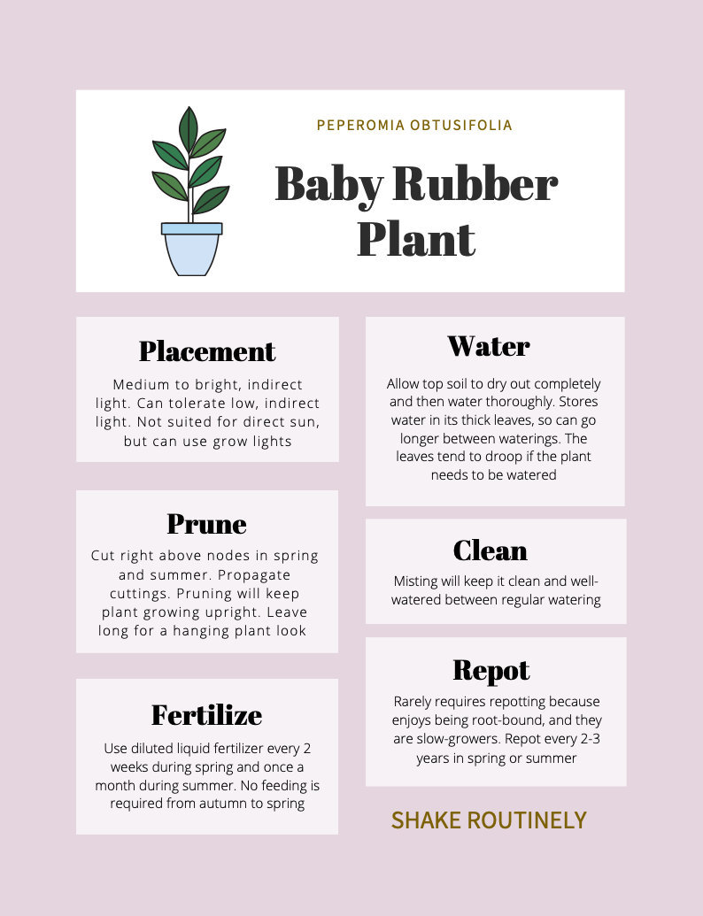 You Must Water Your Baby Rubber Plant Adequately. Although Baby Rubber Trees can handle most household humidity levels they will grow more rapidly when the humidity exceeds 60 percent. This Peperomia variety likes growing in.